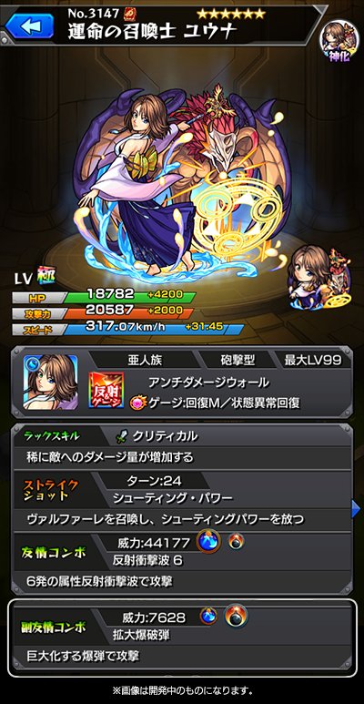 彼女は未だに水属性最強の一角として猛威を振るっていますが、ユウナは回復がMである事と、状態異常回復を持つ事で差別化できています。